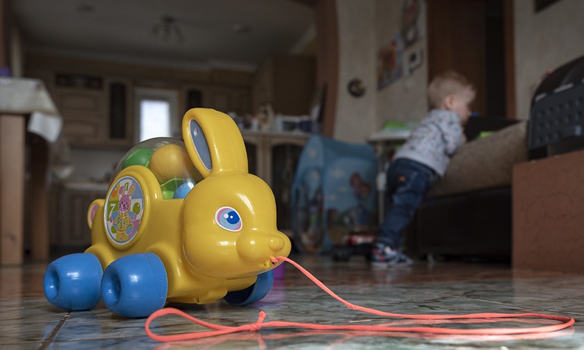 Мишу перевели на НИВЛ, когда ему было семь месяцев. Ребенок не умел держать голову, мог только переворачиваться с боку на бок, и то не всегда. Раньше на ИВЛ мальчику пеленали руки, чтобы он не выдергивал трубку. Мама освобождала одну — и давала ему пластмассовые кольца и погремушки, чтобы развивать моторику. Теперь же Алена могла купать сына, носить его по палате, а до этого просто сидела рядом: медсестры разрешали ей только протирать салфеткой за ушами и менять памперс.