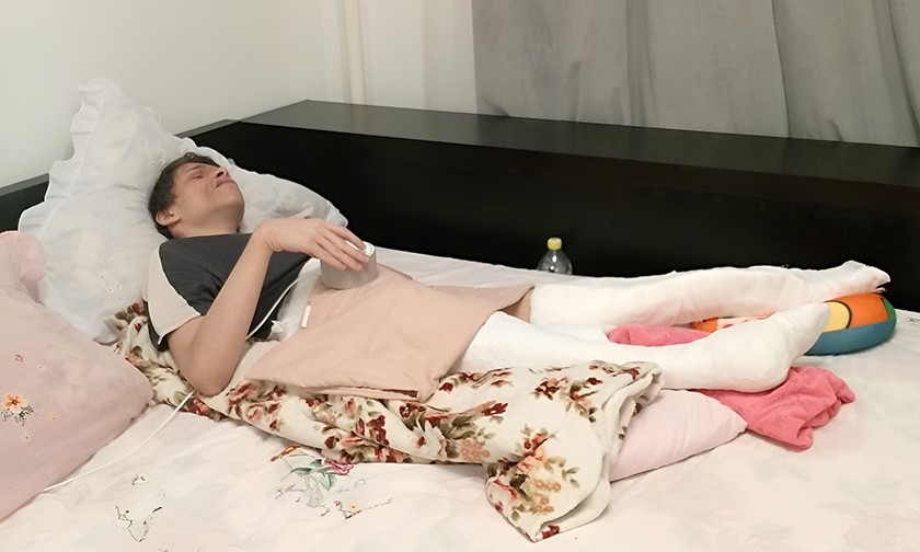 «Кости, как карандаши, тонкие и очень хрупкие», могут сломаться даже от неловкого прикосновения. Последние несколько лет Миша не ходит. Большую часть времени проводит в кровати, поэтому стали атрофироваться мышцы. Нет сил даже самостоятельно перевернуться с боку на бок. У него сильно болят ноги, спина, желудок. Приходится часто принимать обезболивающие.