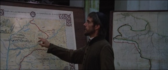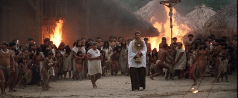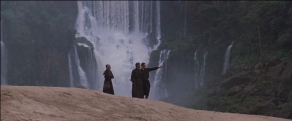 Трагедия разыгрывается на фоне потрясающе красивой природы. Одна из самых известных и потрясающих сцен этого фильма предваряет на экране первое столкновение соперничающих миров, представленных иезуитским священником – отцом Габриэлем, и наемником и работорговцем Родриго Мендосой.
