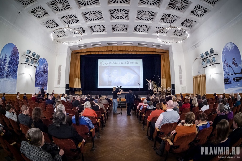 Митрополит Волоколамский Иларион – автор и ведущий фильма – не смог присутствовать на Вечере, и его приветственное слово зачитал иеродиакон Николай (Оно). Кстати, именно прапрадед иеродиакона Николая – Оно Сёгоро Сигэнобу – был самураем, который принял крещение от святителя Николая Японского в 1871 году и стал одним из первых христиан на японской земле.