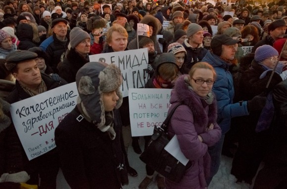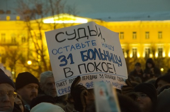 23 января на Марсовом поле состоялся санкционированный правительством Санкт-Петербурга митинг в защиту 31 больницы. По данным МВД, в нем участвовало около 1000 человек.