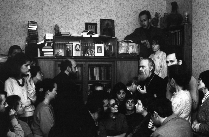 Пришел к нам в церковь (вероятно, лет двадцать назад) мужчина, принес посылку для одной из наших прихожанок. Он старался прийти к концу службы, но судьба не улыбнулась ему, служба не была кончена, он сел сзади. И вот что он мне рассказывал потом: «Я сел сзади, думал: ну, пережду, чтобы кончилась вся эта комедия, и передам пакет». Но по мере того, как он сидел, он чувствовал все больше и больше какое-то «присутствие»: кто-то или что-то тут есть; моменты молчания – не пустота, а наоборот, напряженное присутствие чего-то. Он подумал: это дурман от ладана, настроение, навеянное свечами, иконы, которых он никогда не видел, коллективная истерика собравшихся… но это его достаточно задело, чтобы вопрос перед ним встал, и он попросил разрешения прийти в церковь когда-нибудь, когда никого не будет.
