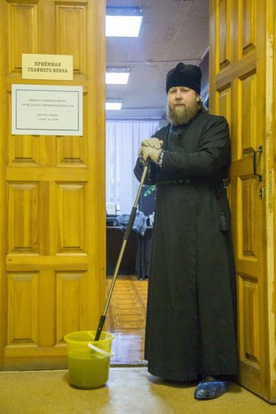 «Уже традиционно архипастырь старается найти в своем плотном графике время, чтобы помочь с уборкой больничных палат. Не зря говорится, что чистота – залог здоровья», — сообщила Рязанская епархия.