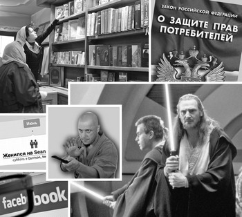 Есть еще один вид православной активности – назовем его юридический. Это когда борьба со злом происходит с помощью различных писем во властные инстанции, сбора подписей и судебных исков. Когда люди требуют запретить «душевредный» концерт, призвать к ответственности «кощунниц», проверить на экстремизм устроителей «Серебряной калоши» и т.п. Совсем недавно Саратов в этом смысле прославился почти на всю страну: группа православных активистов во главе с Владимиром Росляковским выдвинула ультиматум известной социальной сети Facebook, требуя убрать с ее сайта картинки, символизирующие нетрадиционные отношения. Отныне при публикации сообщения о свадьбе пользователи имеют возможность в зависимости от полов супругов подобрать соответствующее изображение. Так, помимо традиционной «жених и невеста», это могут быть два «жениха» или две «невесты». Нововведение вполне объяснимо – первая картинка уже обнаружена на странице основателя Facebook Криса Хьюза, который известил о свадьбе со своим бойфрендом Шоном Элдриджем…