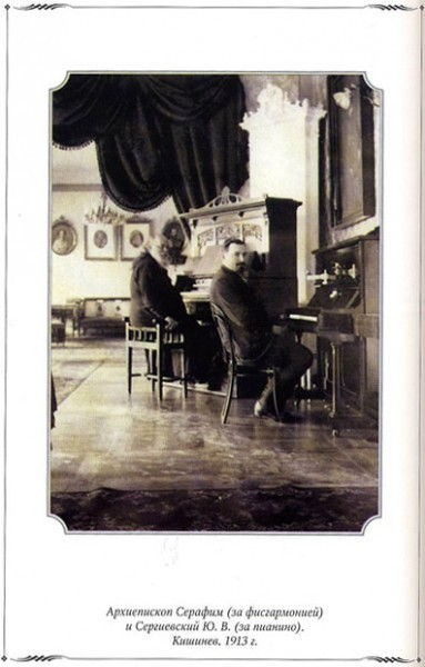 Архиепископ Серафим за фисгармонией и Ю.В. Сергиевский за пианино, Кишенев, 1913 год. Фото: novodev.narod.ruЗа „генеральство“ и „черносотенные“ взгляды владыка Серафим не единожды пострадал. Во время революции 1917 года, под предлогом „борьбы с политическим реакционером за обновление общественной и церковной жизни“ большевистские власти выслали архиепископа Серафима из Тверской губернии.