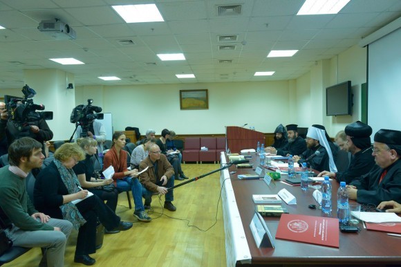 10 октября 2013 года в Москве в перерыве заседания научно-богословской конференции «Преподобный Исаак Сирин и его духовное наследие», открывшейся на философском факультете МГУ, председатель ОВЦС митрополит Волоколамский Иларион ответил на вопросы представителей СМИ. В общении с журналистами также приняли участие представитель Патриарха Антиохийского и всего Востока при Патриархе Московском и всея Руси архиепископ Филиппопольский Нифон, члены делегации сирийских иерархов: епископ Апамейский Исаак, викарий Дамасской епархии (Антиохийский Патриархат); архиепископ Иосиф Абси (Греко-Мелькитская Католическая Церковь); епископ Армаш Налбандян (Армянская Апостольская Церковь, Эчмиадзинский Католикосат); архиепископ Мар Силуан Петр Аль-Немех (Сирийская Ортодоксальная Церковь); архиепископ Самир Нассар (Маронитская Церковь).
