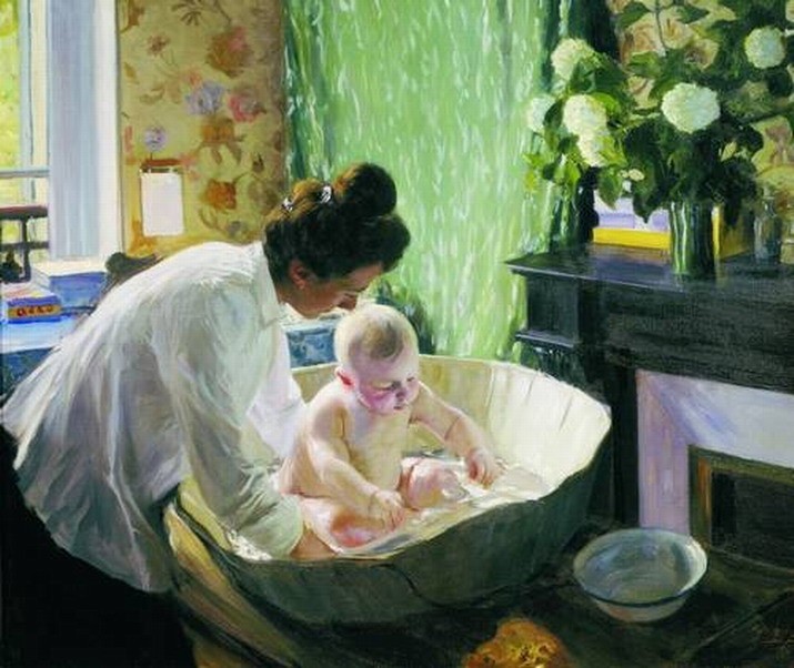 Некоторые отголоски этих взглядов дошли и до наших дней, у нас тоже с насморком детей не купают, считают, что они могут серьезно разболеться. С точки зрения медицины второй половины XIX века это ложное представление, детей можно и нужно купать, даже не совсем здоровых. Пособия для матерей борются с этим представлением так же, как они борются со всем традиционным укладом. Врачи разъясняют своим читателям, что купание никак не может повредить ребенку. Некоторые авторы считают, что купаться младенцу надо два раза в день, другие – что один раз в день, самые умеренные не настаивают на каждодневном купании, но объясняют, что вреда от этого всё-таки не будет.