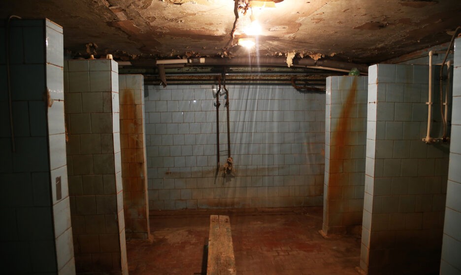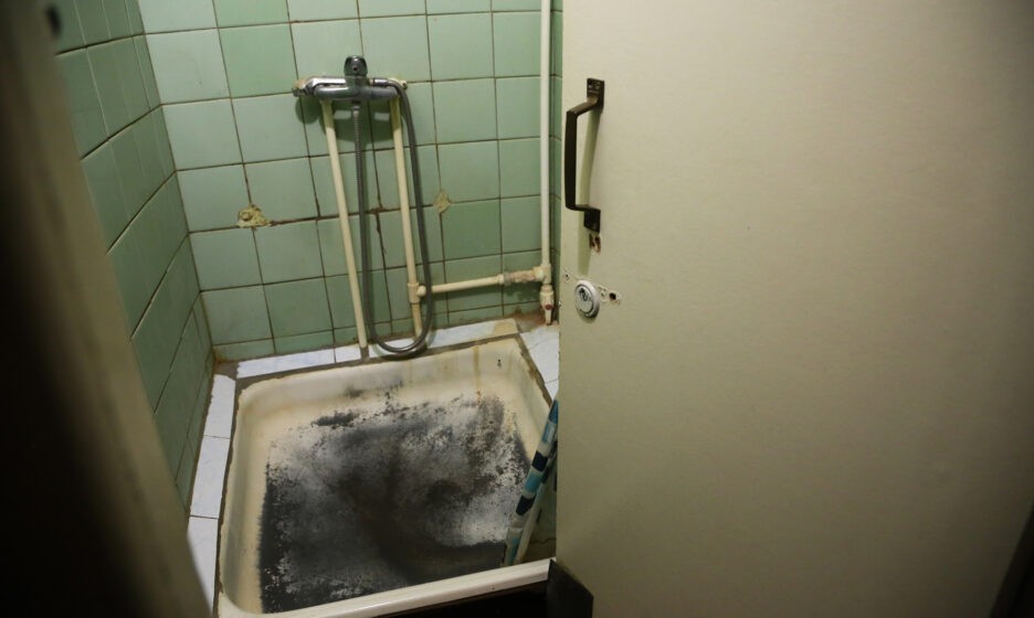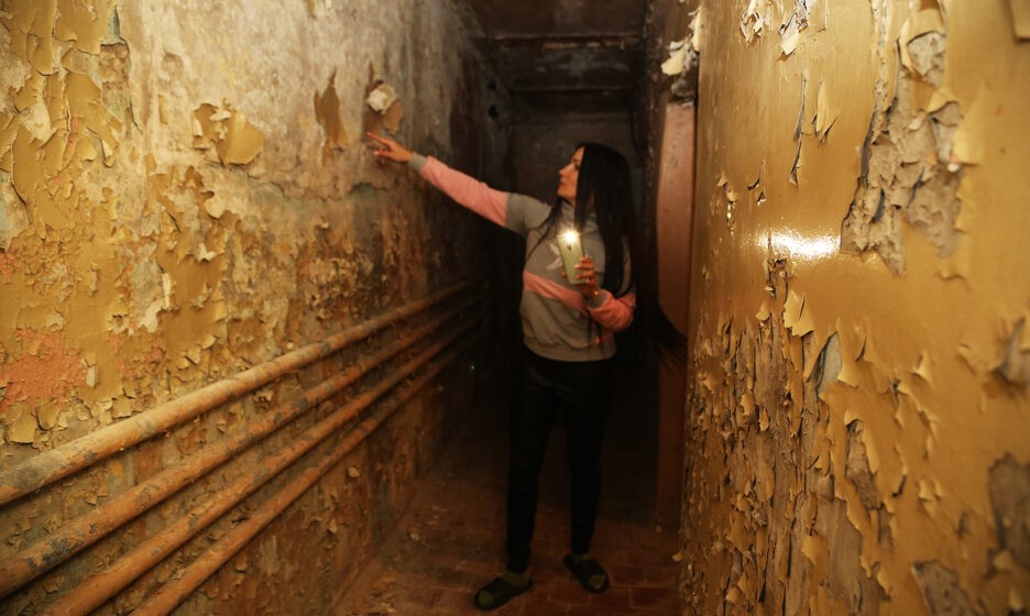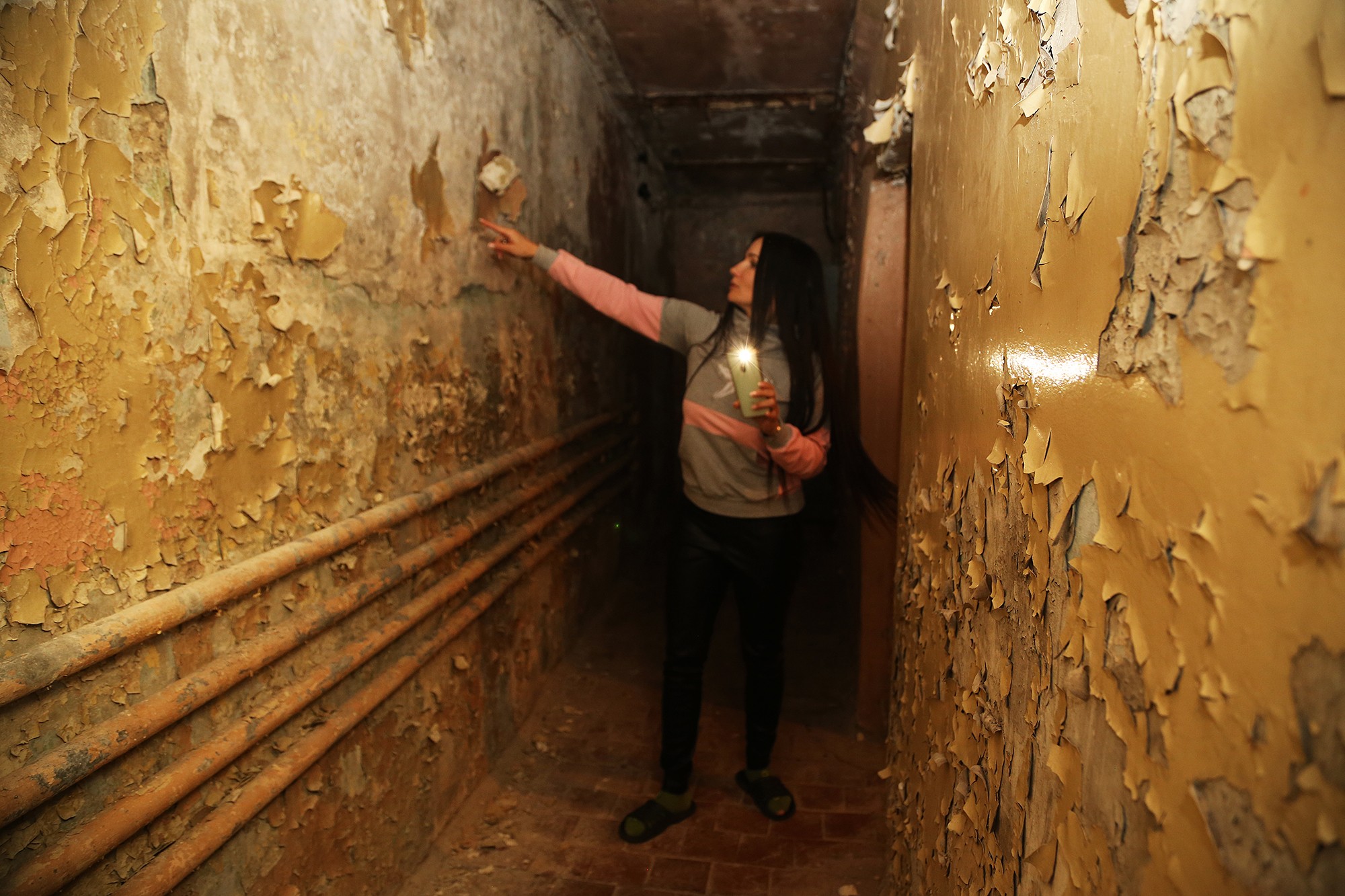 Мы идем по первому этажу общежития. В подвале — ржавый душ. В кухне установлены три мойки. Первая, что у окна, сияет чистотой, другая — крайняя — покрыта жиром и грязью. Электричества нет. Когда темно, семья Али-Заде приносит сюда портативную лампу. Проводка старая, но менять ее никто не спешит.