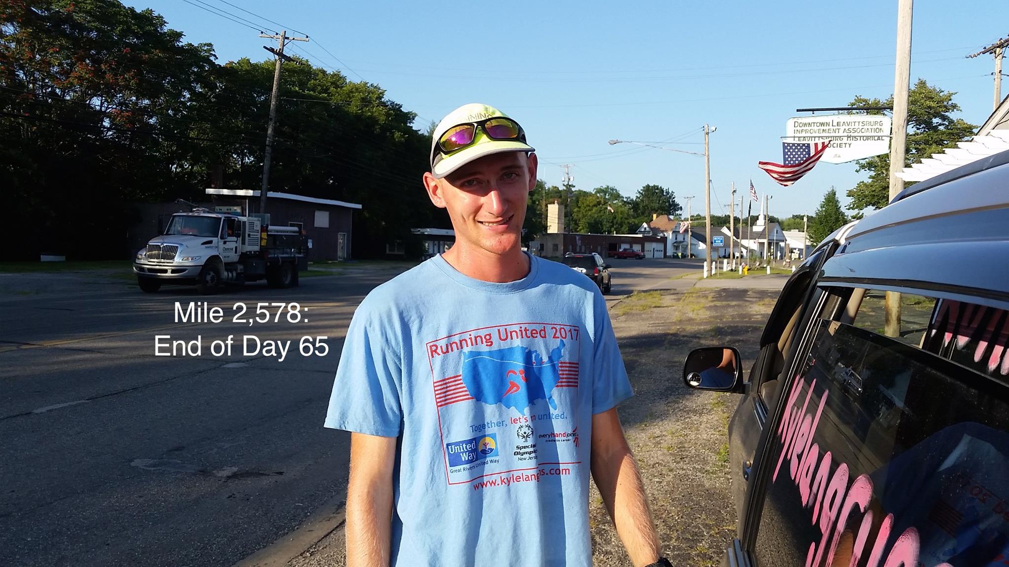 Первая удача вдохновила его, и Кайл поставил перед собой новую цель — преодолеть страну от побережья к побережью. Он пробегал 10-25 миль (это 16-40 км) в будни и 30-40 миль (48-60 км) в выходные, чтобы убедиться в своей способности выдержать такие расстояния.
