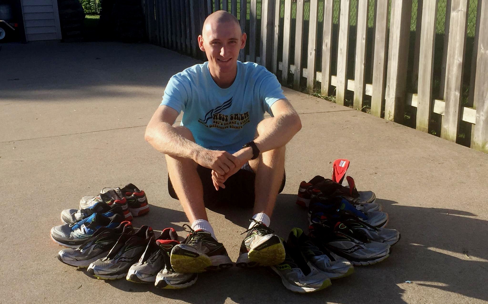 Кайлу Лангу 20 лет, и ради благотворительности он пробежал почти 5000 км. За время своего пути он сносил 9 пар кроссовок.