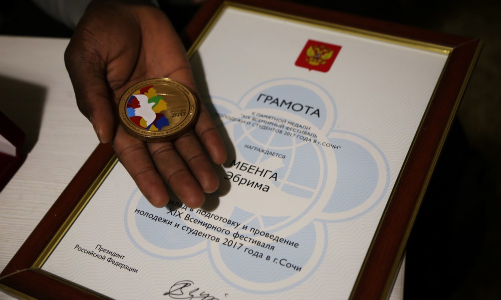 После нашего разговора он принесет пакет, в котором бережно хранит грамоту, подписанную президентом России, и памятную медаль с фестиваля в Сочи. Говорит, что это для него очень важно. Его мечта — увидеть президента, но о чем бы он с ним поговорил, Эбрима держит в секрете.