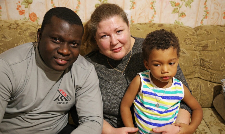 Мы встречаемся в съемной квартире, куда семья переехала три дня назад. Трехлетний сын спит, а Ксения — супруга Эбримы — готовит ужин. Мой собеседник хорошо говорит по-русски, но если нам трудно понять друг друга, помогает его жена.