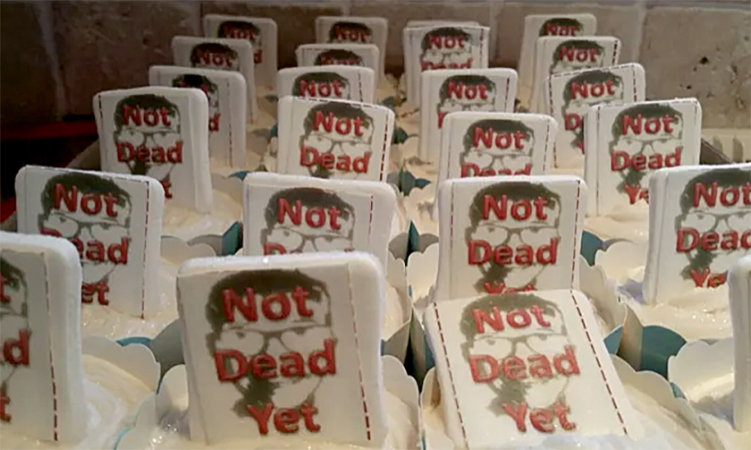 В наборы, помимо прочего, входили капкейки с могильными камнями и надписью «Еще не там». Вот вам его чувство юмора во всей красе.