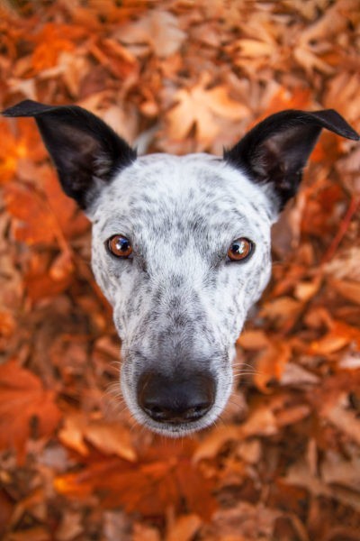 Собака: Бобби, скрещивание родезийского риджбека. Эта фотография была сделана на одной из моих любимых фотосессий в прошлом году. На фотографии вы не можете видеть, что Бобби потерял глаз. Тем не менее, он — одна из самых нежных и счастливых собак, которых я когда-либо фотографировала. Вместо позирования он предпочитал играть с листьями или садиться мне на колени, несмотря на свои размеры.