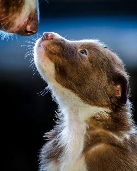 — Это щенки Мэйси и Вино. Нелегко было сфотографировать их вместе, потому что все вокруг хотели погладить этих малышей. Но стоило на несколько минут оставить их наедине, как у нас получился прекрасный кадр.