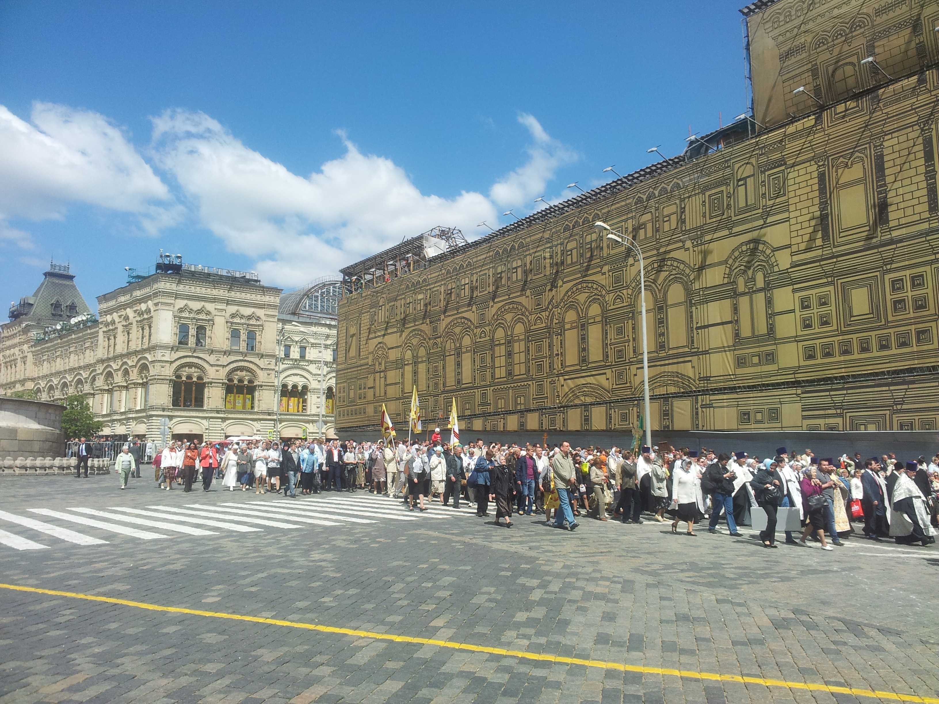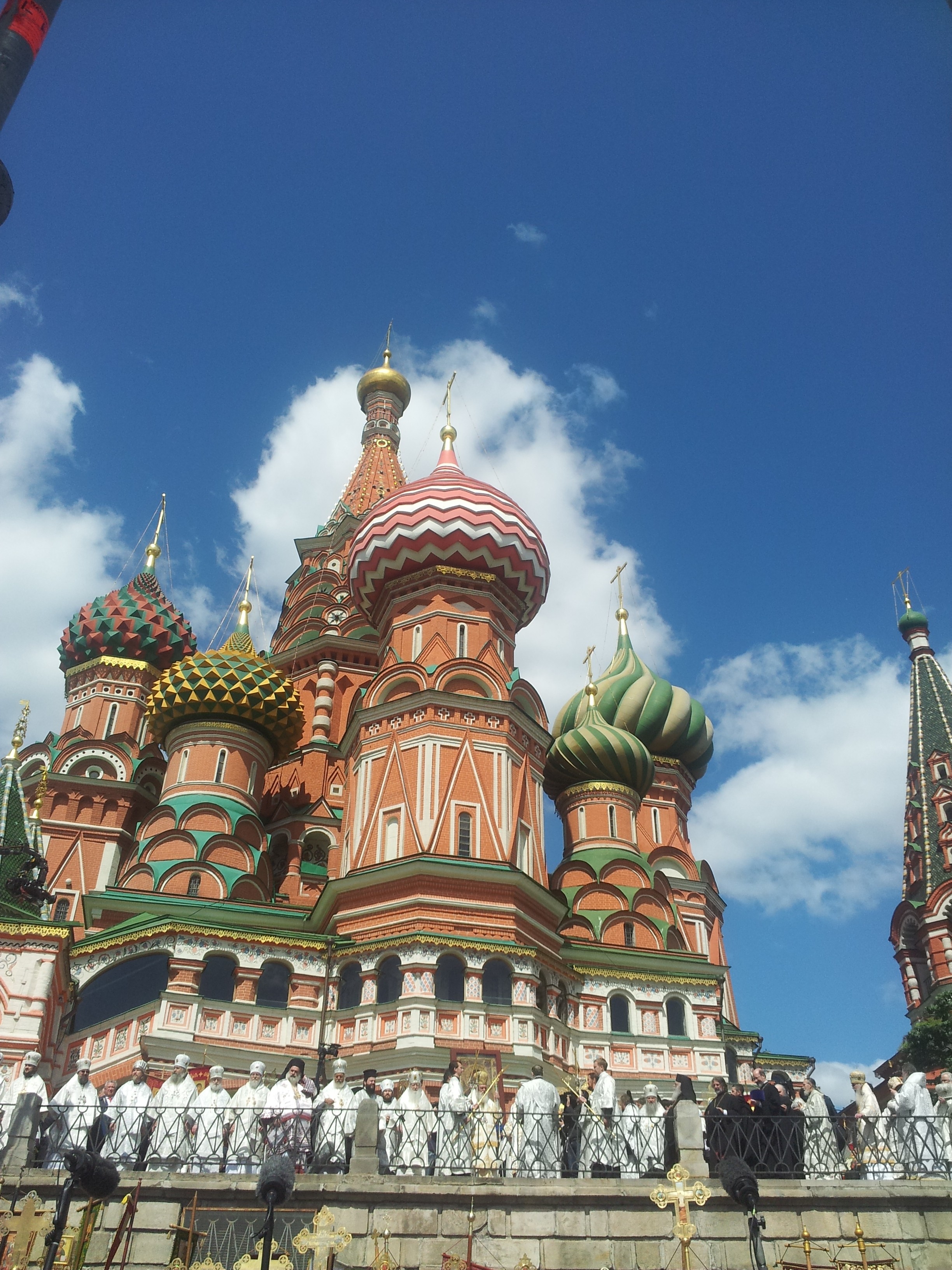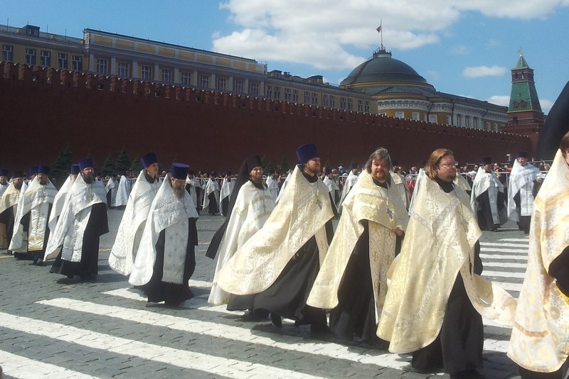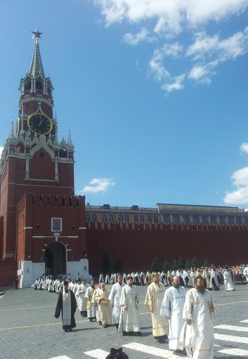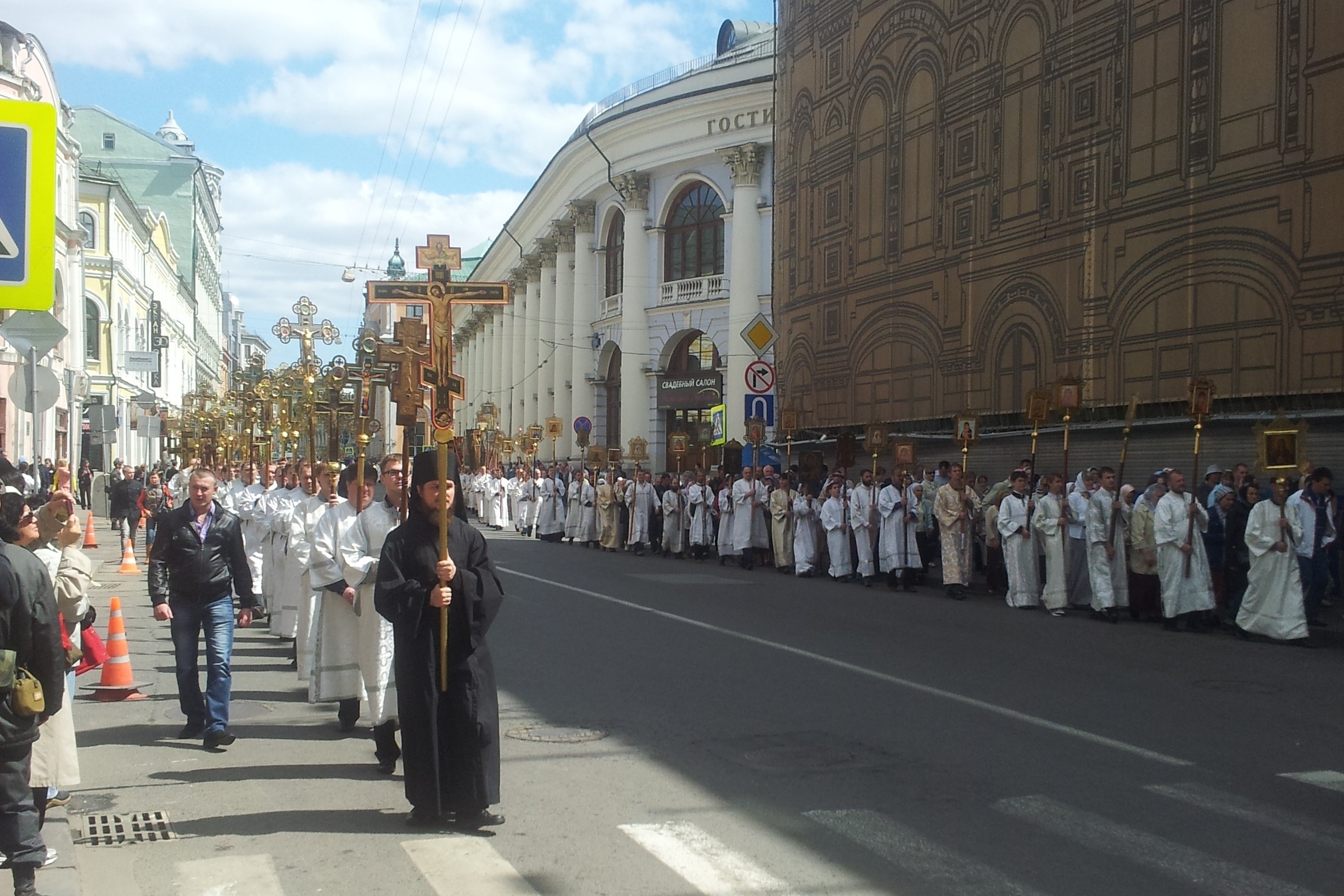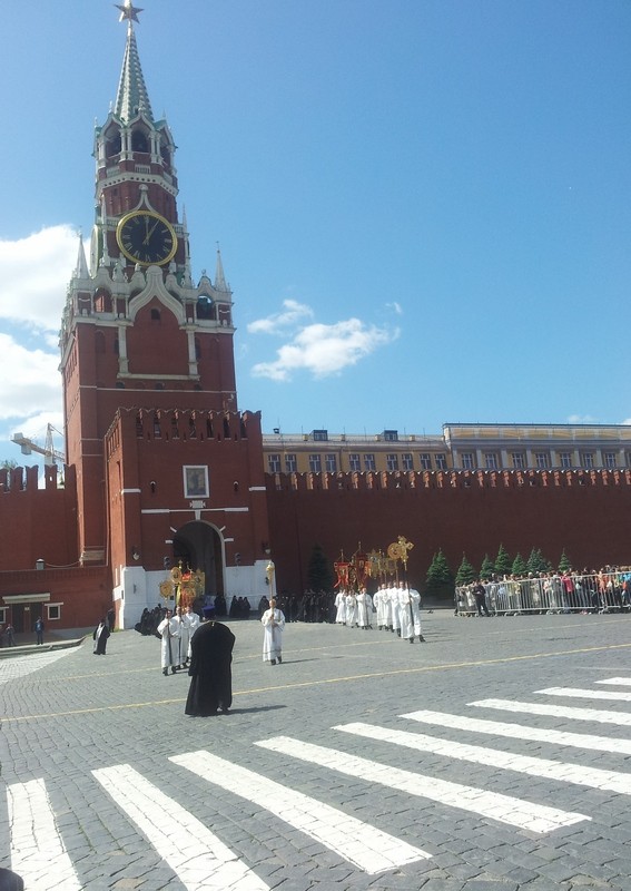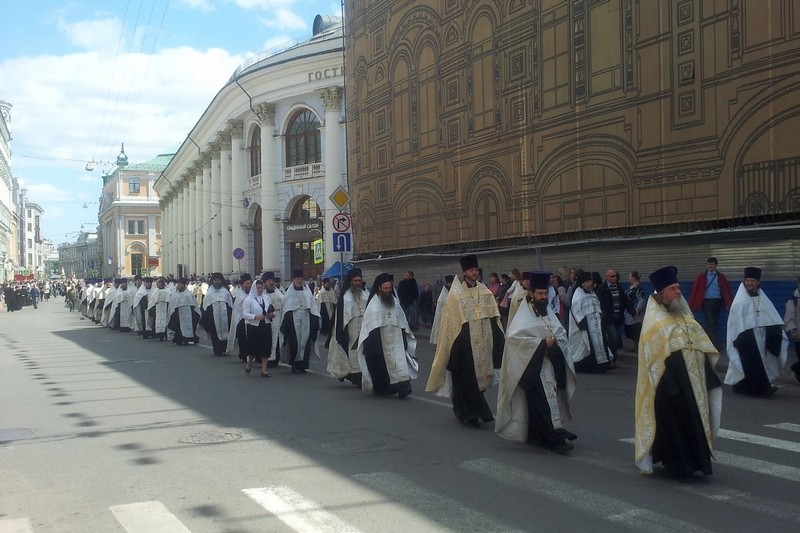 Торжественный крестный ход к Васильевскому спуску. Пораженные иностранцы даже перестали фотографировать на несколько минут.