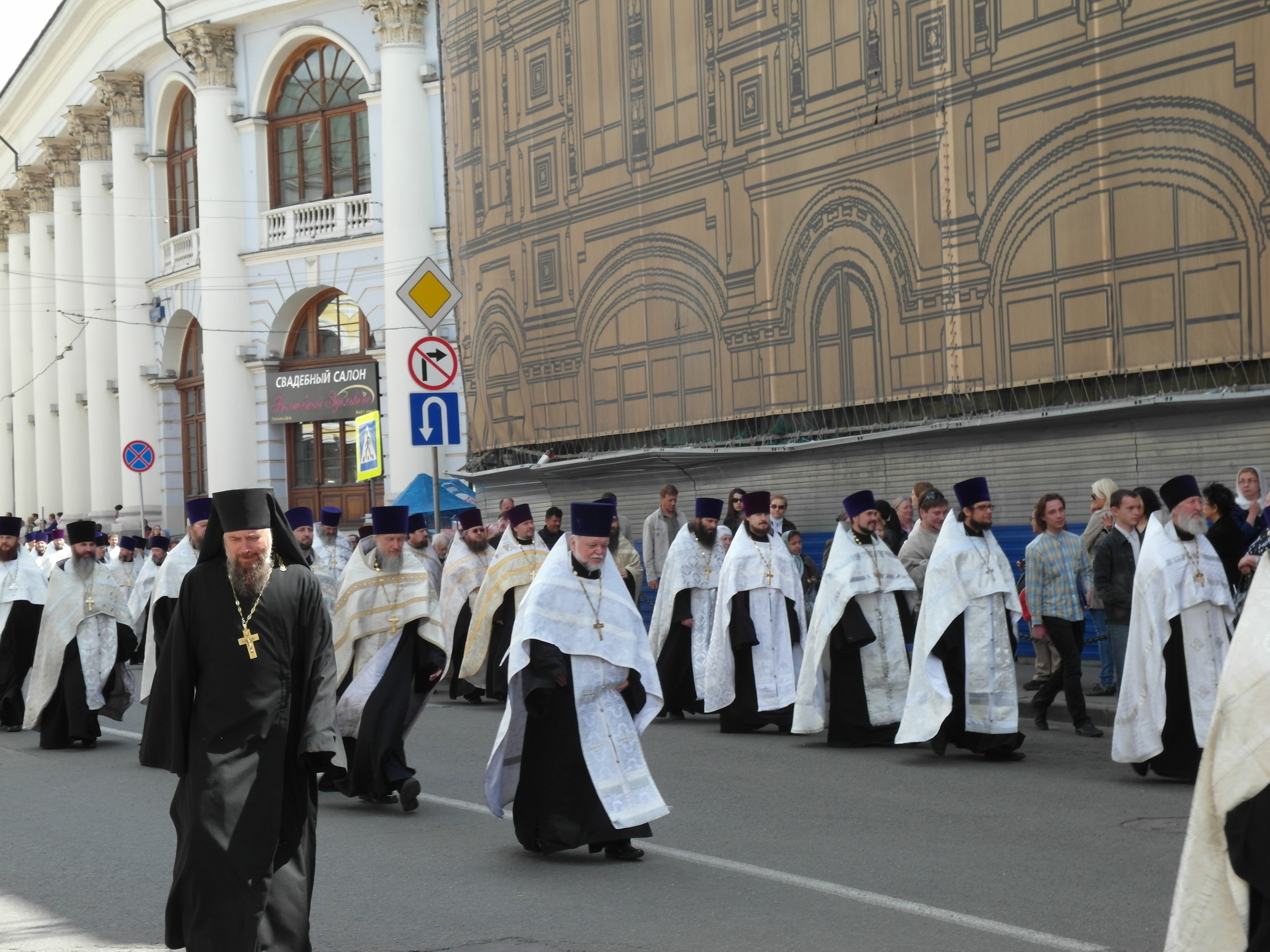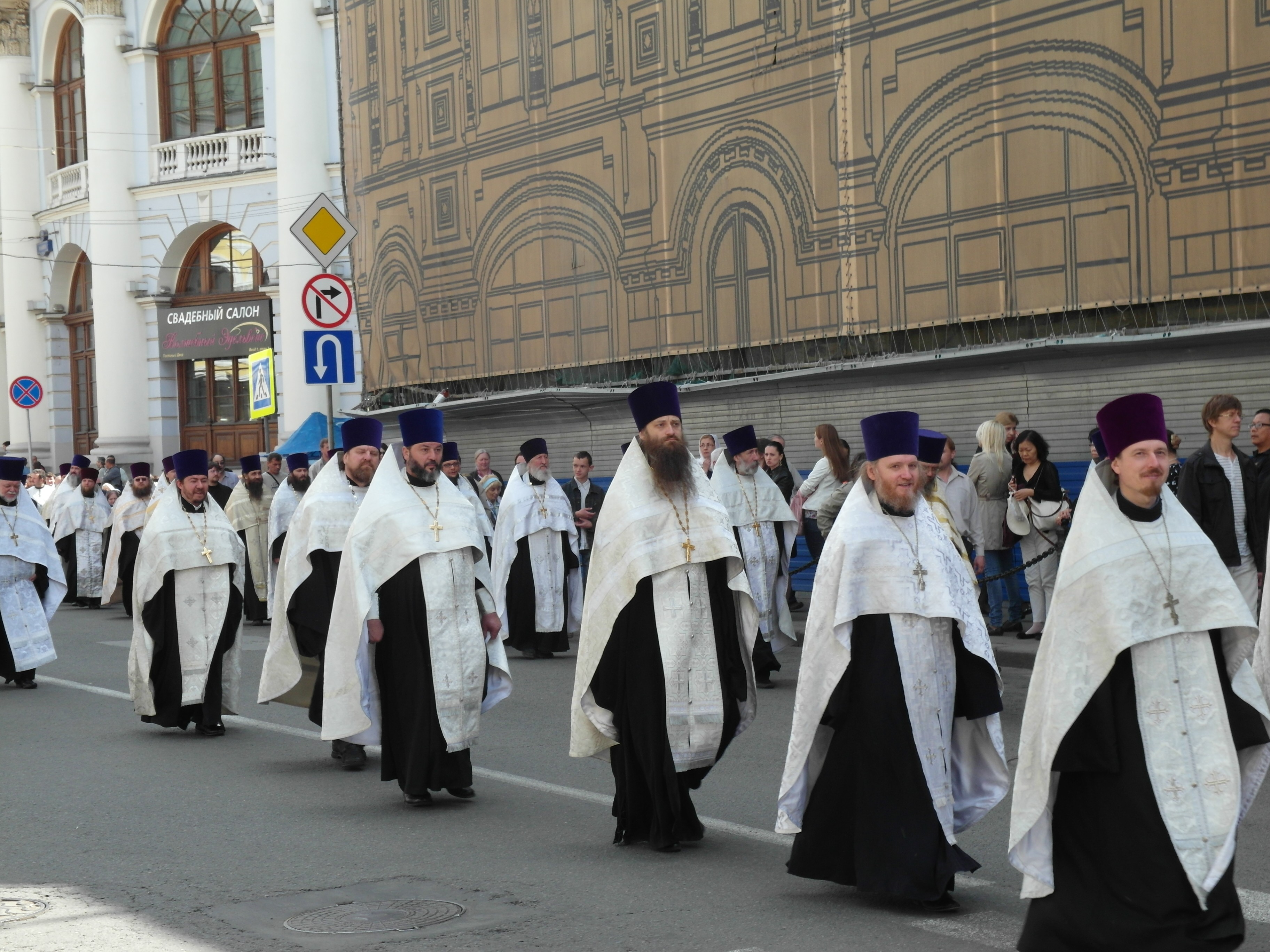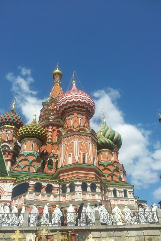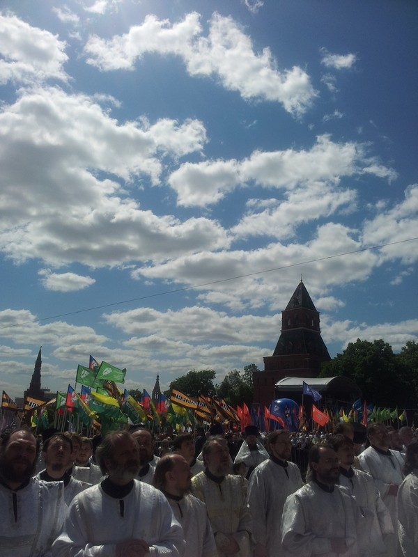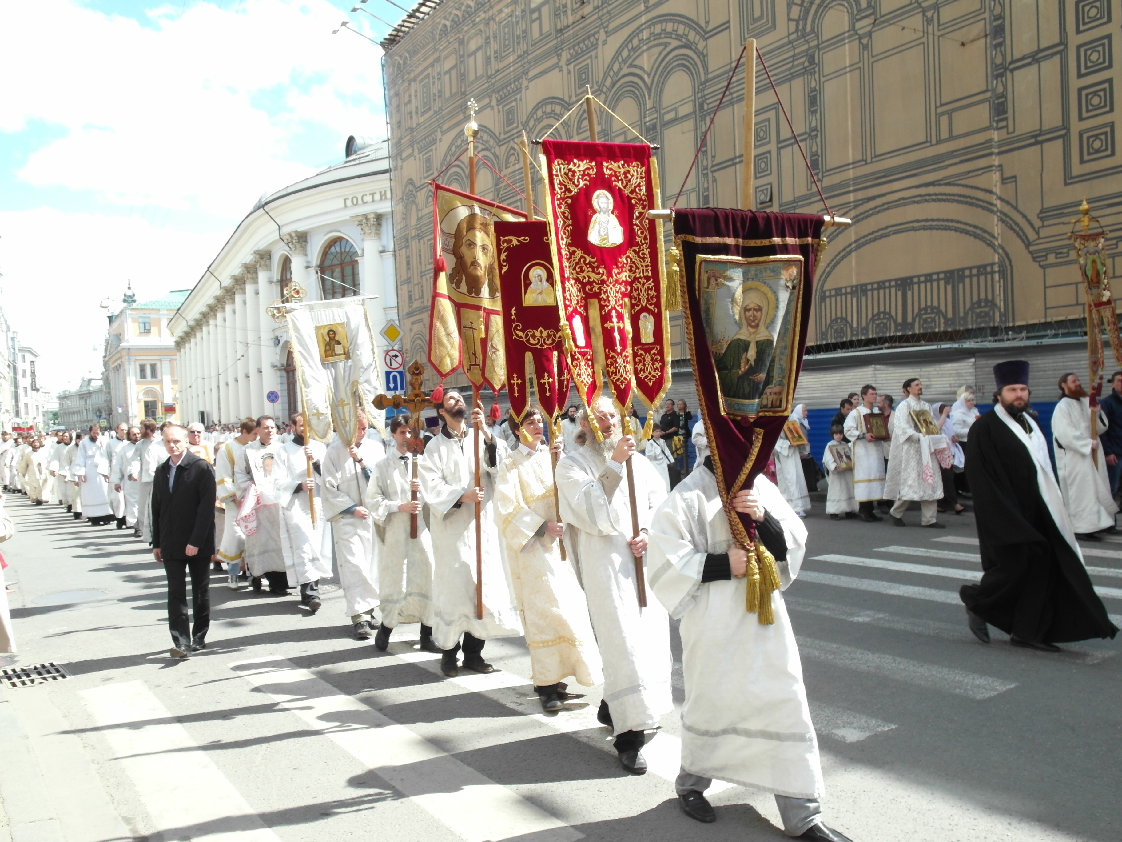 Торжественный крестный ход к Васильевскому спуску. Пораженные иностранцы даже перестали фотографировать на несколько минут.