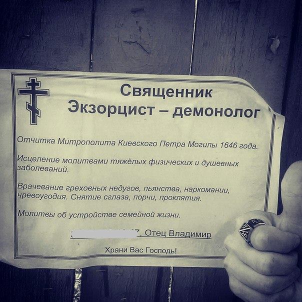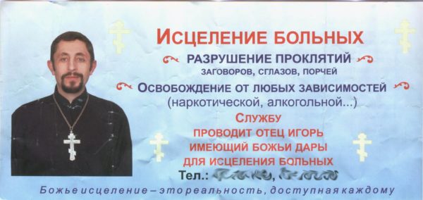 Главный признак настоящего духовного целителя — отсутствие фамилии. Вот отец Вадим и матушка Фотиния тьму медицинских учебников написали, а фамилии их так никто и не знает. Тайные монахи, наверное.