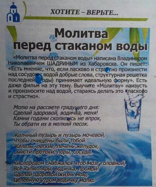 Впрочем, воду можно сделать целебной и самостоятельно, написав для этого специальную молитву. Доказано жителем Хабаровска!
