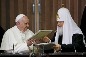 Первая в истории встреча Патриарха Московского и всея Руси и Папы Римского состоялась в пятницу 12 февраля 2016 года в международном аэропорту Гаваны (Куба). Она продолжалась два часа и закончилась подписанием совместной декларации, в которой был затронуты самые острые вопросы современности.
