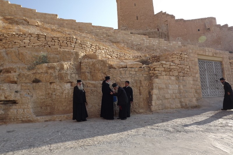 Кстати, этот самый цикл, который известен у нас как Иерусалимский устав, был разработан св. Саввой именно здесь, и в библиотеке монастыря монахи бережно хранят ранний список Типикона — оригинал погиб во время нашествия на Палестину персидского царя Хосрова II Парвиза в 614 г.