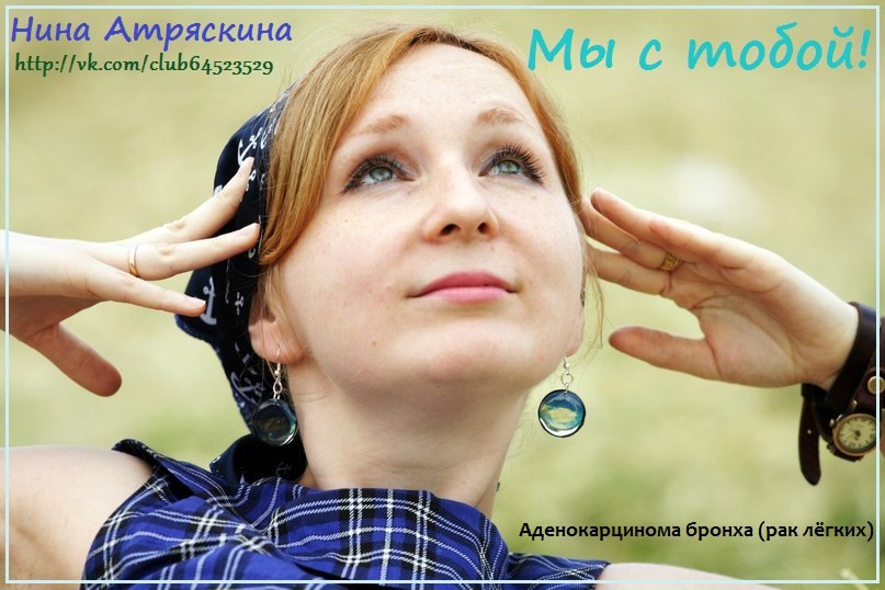 «Нина Атряскина — филолог по образованию, научный сотрудник Музея-заповедника «Коломенское», одна из лидеров движения светлого рока и позитивного направления в современной музыке, мама чудесного мальчика Миши. С Ниной случилась беда. Осенью Нина проходила обследование после бронхита. За два дня перед Новым 2014 годом врачи поставили диагноз — рак легких (аденокарцинома бронха). Сейчас ведутся дообследования. Музыканты, ученые, зрители, друзья, коллеги — сотни людей стараются помочь, вернуть Ниночку ее семье, маленькому сыну, нуждающимся в ней друзьям. Произошедшее учит молодых людей молиться. Ежевечерне они молятся о здравии Нины в 22 часа», — рассказала Нина Кибрик.