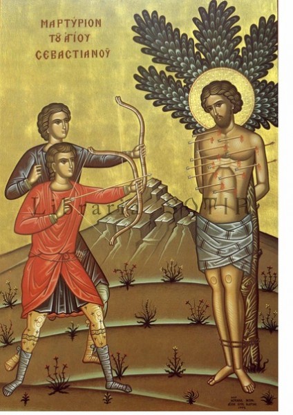 Юны и незрелы не Севастиан — его враги, вернее, его бывшие сотоварищи, гвардейцы-преторианцы, стреляющие в него из луков на современной греческой иконе. Стрелы несмысленных и злых в своем незнании младенцев (Пс. 63:8) наносят язвы мужу совершенному Севастиану… Они — «младенцы, колеблющиеся и увлекающимися всяким ветром учения, по лукавству человеков, по хитрому искусству обольщения» (Еф. 4:14).