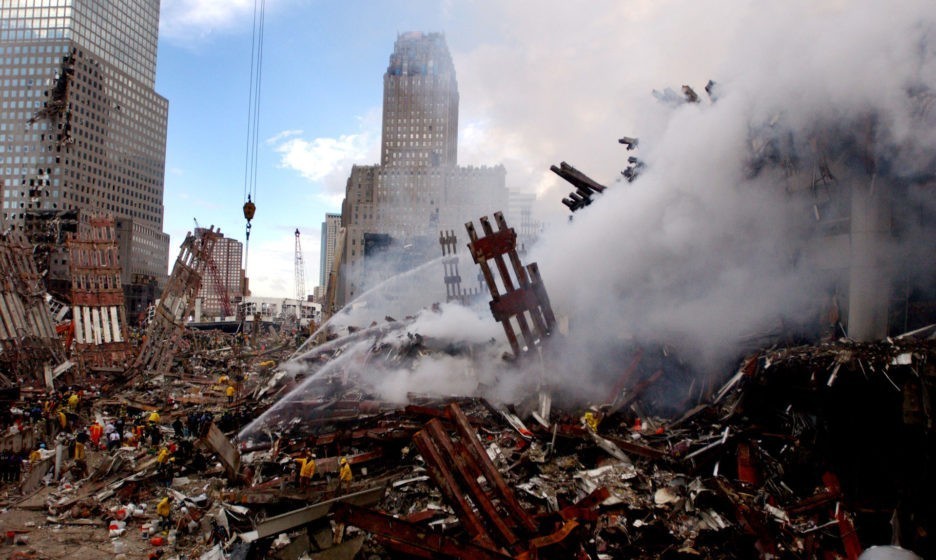 Пожарные тушат огонь на руинах ВТЦ. Фото: U.S. Navy Photo