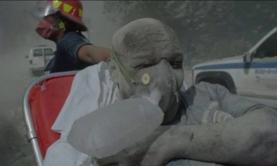 Когда пожарный пришел в себя, он попытался выбраться из-под обломков и мусора. Покрытый пылью, он добрался до машины скорой помощи.