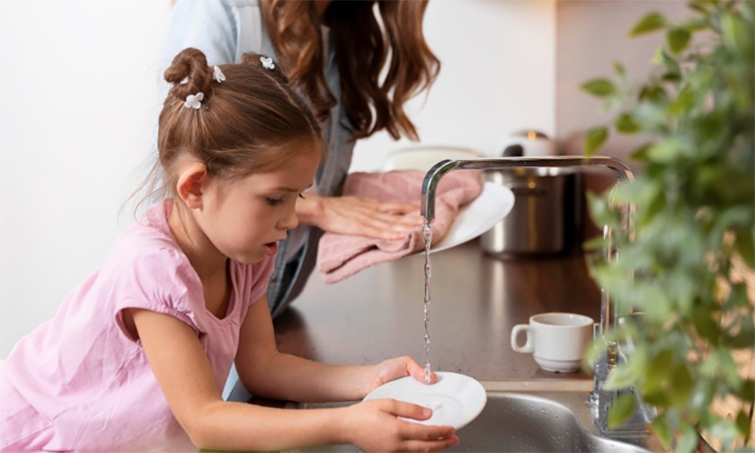 Сколько себя помню, у нас была посудомоечная машина. Но дети не любили даже близко приближаться к ней. Ее же нужно выгружать, загружать. Чтобы хорошо отмыла, нужно предварительно посуду ополоснуть, губкой остатки еды смыть. Иначе все присохнет и придется замачивать тарелки и кастрюли. По большому счету, загрузить посудомойку — это быстро обмыть всю посуду руками. То есть возиться с водой придется.