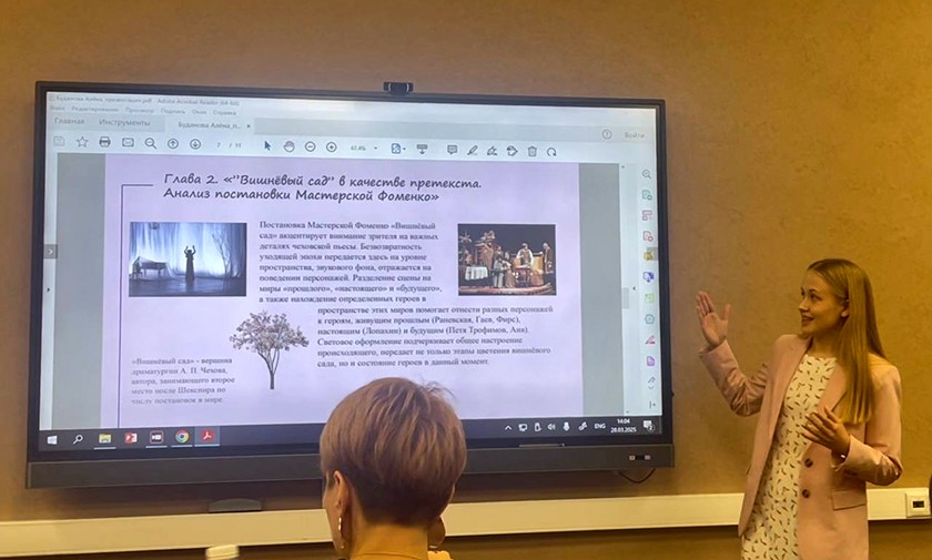 В 10-м классе вместе с руководителем кафедры словесности я провела невероятное исследование по «Вишневому саду», написала по нему научную статью, а в этом году защитила свой проект на конкурсе «Высший пилотаж» от Высшей школы экономики и стала победителем в номинации «Филология». То есть проделала масштабную работу по «Вишневому саду» и современным произведениям, в которых есть отсылки к чеховской пьесе. Соответственно, угадайте, по какому произведению я писала второе задание творческого тура, где была загадана «Скрипка Ротшильда»?