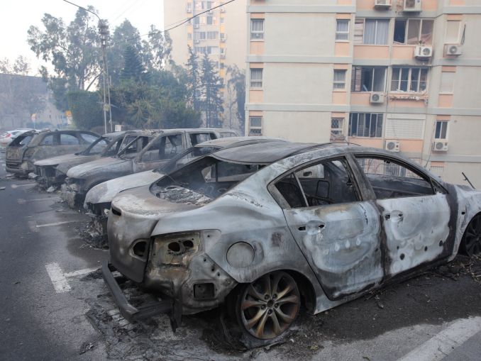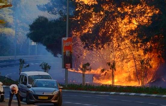 Фото: haaretz.comСейчас полицейские машины продолжают эвакуацию жителей районов, прилегающих к горящим зданиям. С призывом покидать дома квартиры обходят группки военнослужащих, передает «РИА Новости».