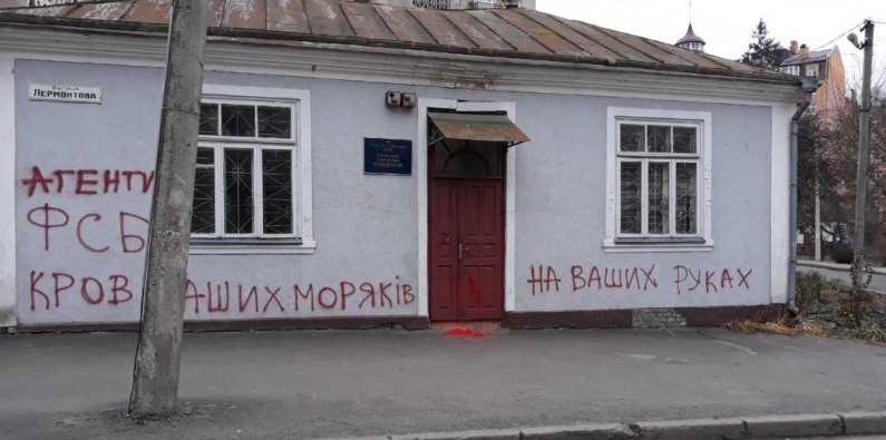 Злоумышленники оставили провокационные надписи: «Агенты ФСБ кровь наших моряков на ваших руках». Также нападавшие вылили краску возле входа. В связи с инцидентом возбуждено уголовное дело.