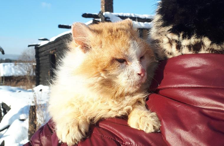 На Урале кот полтора года ждет погибших хозяев на месте сгоревшего дома