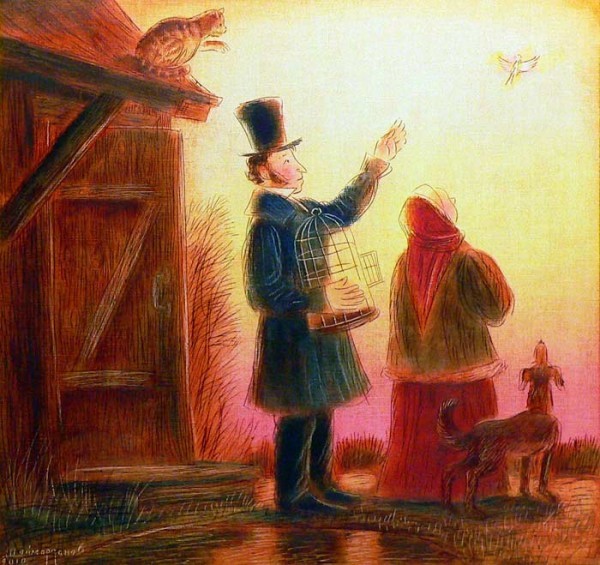 Но в Петербурге было заведено отпускать птиц именно на Пасху: «В Страстную неделю и в неделю Светлого Воскресения разносят птичек в клетках, как-то: жаворонков, синиц, подорожников и продают их, с условием на выпуск», – пишет Терещенко, исследователь русских народных традиций. И Пушкину «на чужбине» припомнилась именно петербургская Пасха. Быть может, тогда, в 1823-м году, ему и в Кишинёве удалось выпустить из клетки какую-нибудь канарейку? Поверим поэту на слово.
