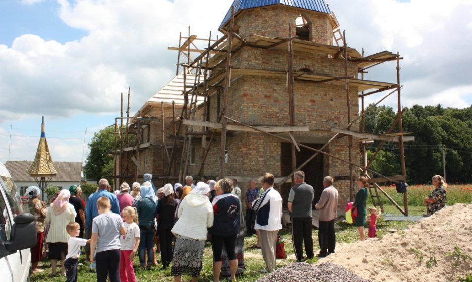 «Я на проповеди тогда сказал, что этот будущий храм уже построен на небе и в сердцах людей. А их любовь превратится со временем в храм, — вспоминает отец Анатолий. — Видим, что так и произошло. Я наблюдал, как привозили кирпич, как и стар и млад, все-все, участвовали в строительстве храма. — Средствами помогали тоже всей округой, были пожертвования от наших людей и в 5000 евро, жертвовал каждый, кто сколько мог. Мы обращались и к Блаженнейшему митрополиту Онуфрию, он нам два или три раза жертвовал средства».