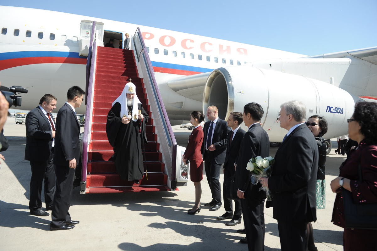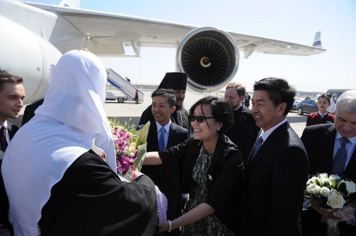 В пекинском аэропорту «Шоуду» Предстоятеля Русской Православной Церкви встречали заместитель директора Государственного управления по делам религий при Государственном Совете КНР Чжан Лэбинь, Чрезвычайный и Полномочный Посол России в Китае А.И. Денисов.