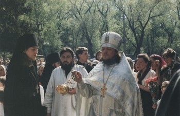 В Новомосковске все было очень трудно. Когда я приехал, местная газета организовала опрос: нужен ли вообще храм в этом городе. Не знаю, как его проводили, но большинство людей якобы ответило, что «храм нам не нужен»… Везде, где я служил раньше, я ходил только в подряснике. А тут стал ходить в костюме, не знаю, почему-то подумал, что здесь так нужно. Но когда со мной на улице стали здороваться: «Здравствуйте, батюшка!»,— я решил: «Раз меня и так все знают, значит, надо ходить так, как положено».