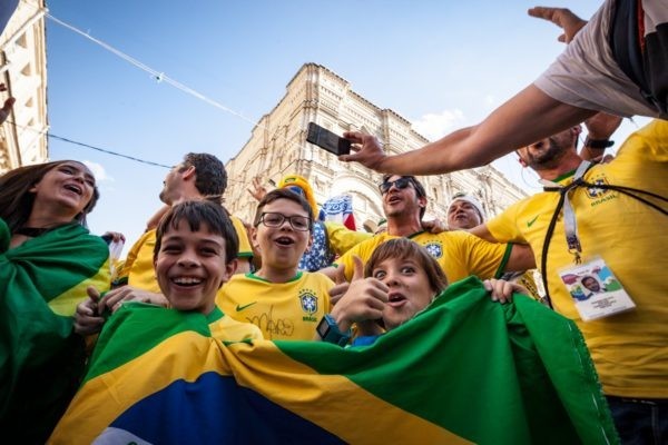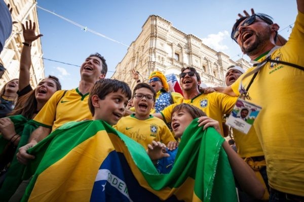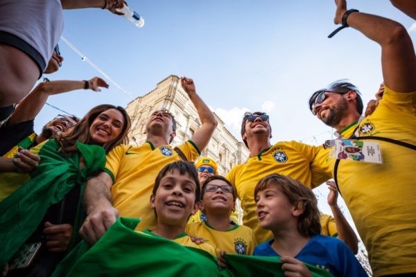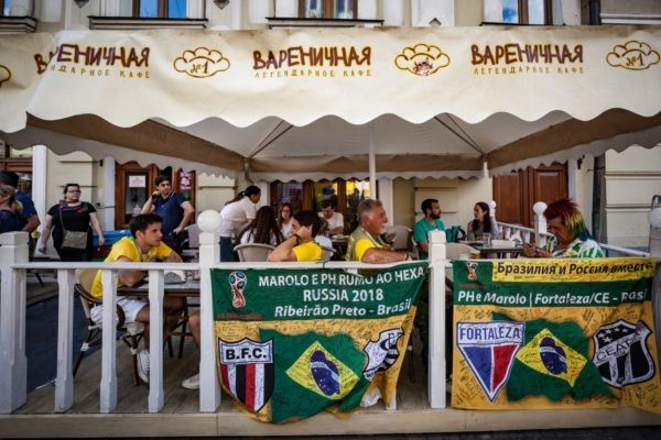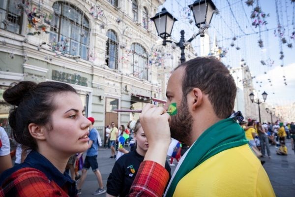 Футбол, оказывается, объединяет. Вроде бы Никольскую заняли команды-соперники, но никакого соперничества нет. В районе перехода на Театральный проезд попадаю в сине-зелено-красно-желто-белую толпу: это сербские и бразильские болельщики вместе поют, танцуют, обнимаются и фотографируются на память.