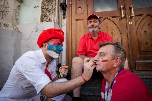 И если Москва в эти футбольные дни – столица мира, то Никольская – улица мира, веселья и карнавала. Почему иностранным болельщикам полюбилась именно эта, тесная на самом деле улочка, а не Ильинка или, скажем, Варварка, доподлинно неизвестно. Скорее всего, прилетев в Москву, люди шли на Красную площадь, расстраивались, так как она долго была закрыта, и оставались праздновать около нее, чтобы видеть красные звезды Кремля хотя бы через железную ограду и суровые лица российской полиции.