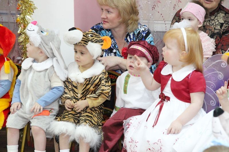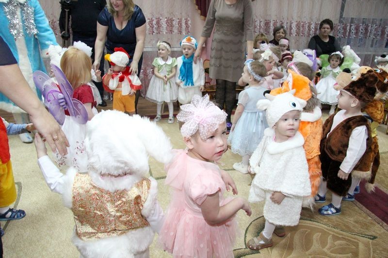 Несмотря на то, что малыши совсем еще крохотные, они смогли выучить песни и стихотворения, и исполнить их для Деда Мороза.