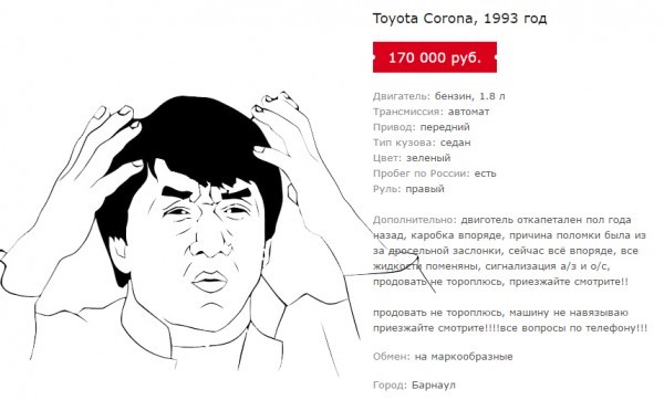 5. Двиготель откапетален. Ну а на десерт сегодня то, от чего содрогнутся даже закаленные читатели рубрики «Лингвалидол». Перед вами — объявление о продаже машины. Бог с ним, с двигОтелем, но вот что такое откапетален? Или кто такой? Может быть, это какое-то иностранное слово? Или фамилия? Источник этого чуда орфографии — жаргонное выражение автолюбителей «откапиталить двигатель», то есть провести его капитальный ремонт. Самом слову после такого написания тоже требуется откапиталивание.