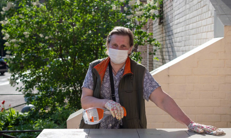 На работу я не боялась выходить. Единственное — в начале самоизоляции было тяжело с хлором. Помню, в 90-х мы вымывали им все, и я астму себе заработала. И когда обрабатываешь парадную, переживаешь за людей — аллергия же у них может быть. С другой стороны, я мою рано утром, когда еще выходят мало человек. А кто опасается — идет по черной лестнице, там тоже перила обрабатываю. Недавно нам выдали еще 10 литров уже другой жидкости — смесь хлора со спиртом. Мне, честно говоря, кажется, что теперь такая обработка будет всегда.