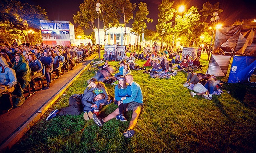 На центральной площади Южно-Сахалинска стоит Дом правительства. Мы поинтересовались у администрации, можно ли на здание повесить экран, а людям сидеть на траве. Нам позволили и первое, и второе. Тогда мы создали в этом месте культурный кластер. За два дня до открытия поставили информационные шатры (запланировали проводить здесь мастер-классы и обсуждения, книжный магазин, кофейню) и стали раздавать бесплатные билеты на показы. Так как число наших площадок было небольшим, да и народу в предыдущие годы на фильмы приходило немного, мы не особенно задумывались, как правильно распространять билеты.