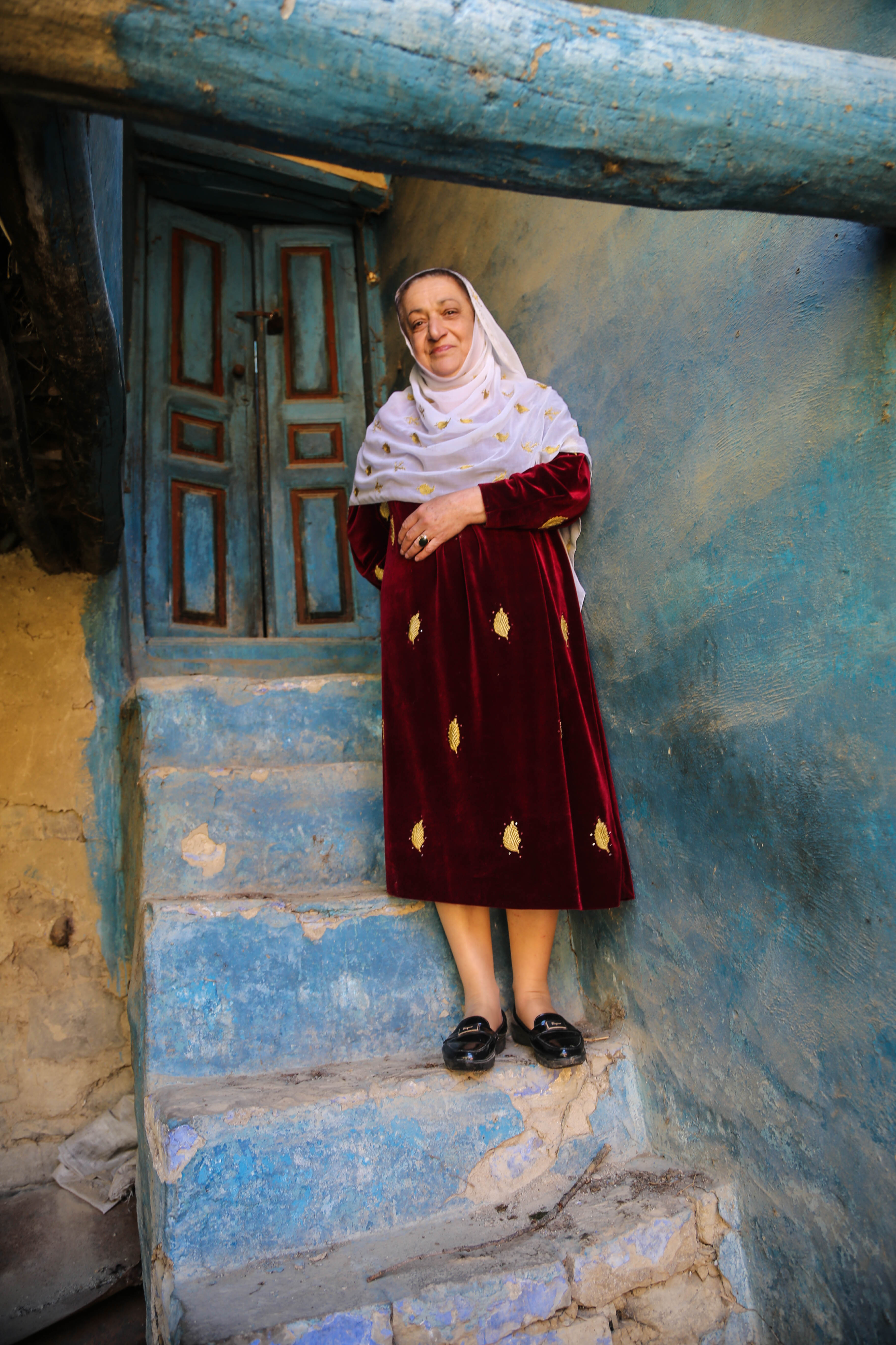 – Голубое здание видите у тропинки? Это Шейхлахяб. Внутри похоронено четыре человека. Это святые люди. У нас с этим местом связана семейная история. Когда я была ребенком, мама часто рассказывала, что наша фамилия пошла от прапрадеда по имени Кана. Он совершал хадж на это святое место. Кто-то ему сказал, что его нужно обустроить. Он и построил этот склеп. Но семьдесят лет назад он был разрушен. Тогда моя бабушка решила привести снова это место в порядок. Отстроили – просто камень на камень сложили без цемента – где же взять его было тогда? Долго не простоял. Мама часто говорила, что род Канаевых должен приглядывать за этим местом. Десять лет назад иду за водой по тропинке, по традиции здороваюсь с умершими – это у нас обязательный ритуал – и понимаю, что пришло время приложить руки. Собрала деньги, сколько было в хозяйстве, купила материал, наняла бригаду. Машине до места не доехать, поэтому много чего сюда носили руками или подвозили на ишаке.