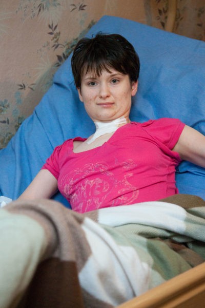 Несколько дней назад Аня начала самостоятельно дышать. Просто взяла и вырвала трахеостому. Родных напугала страшно. Но врач из Дании, который консультирует Рому по телефону, успокоил: если она дышит, трахеостома ей не нужна.
