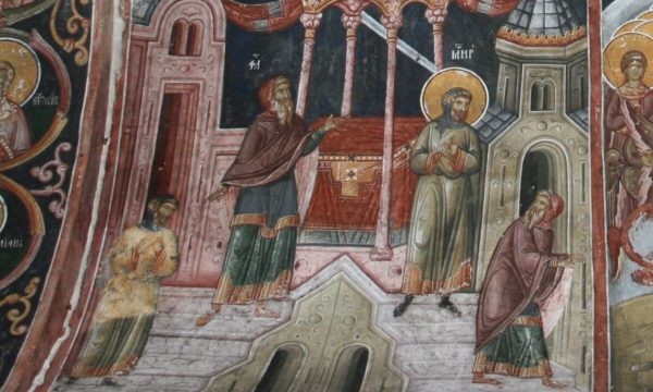 Два человека вошли в храм помолиться: один фарисей, а другой мытарь. Фарисей, став, молился сам в себе так: Боже! благодарю Тебя, что я не таков, как прочие люди, грабители, обидчики, прелюбодеи, или как этот мытарь: пощусь два раза в неделю, даю десятую часть из всего, что́ приобретаю. Мытарь же, стоя вдали, не смел даже поднять глаз на небо; но, ударяя себя в грудь, говорил: Боже! будь милостив ко мне грешнику! Сказываю вам, что сей пошел оправданным в дом свой более, нежели тот: ибо всякий, возвышающий сам себя, унижен будет, а унижающий себя возвысится.