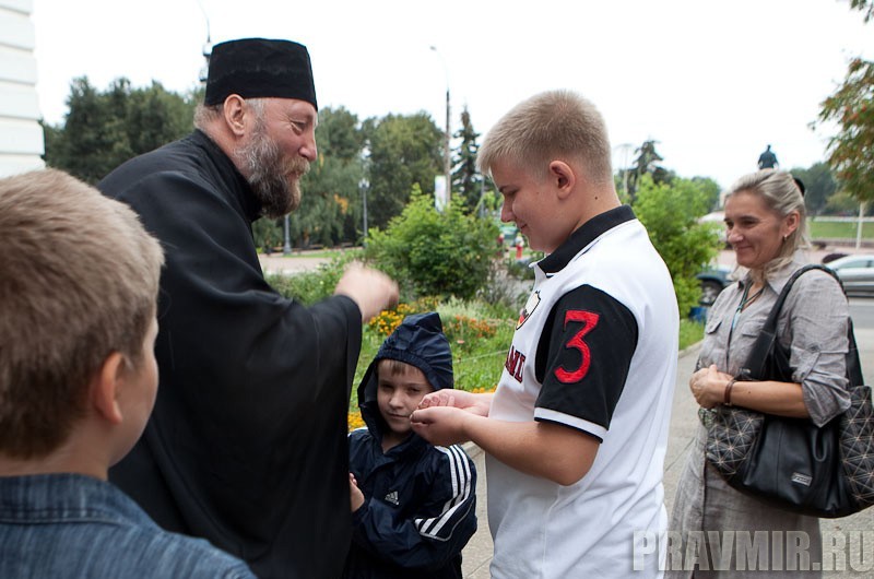 Матушка и батюшка встречают нас на центральной улице города Твери.