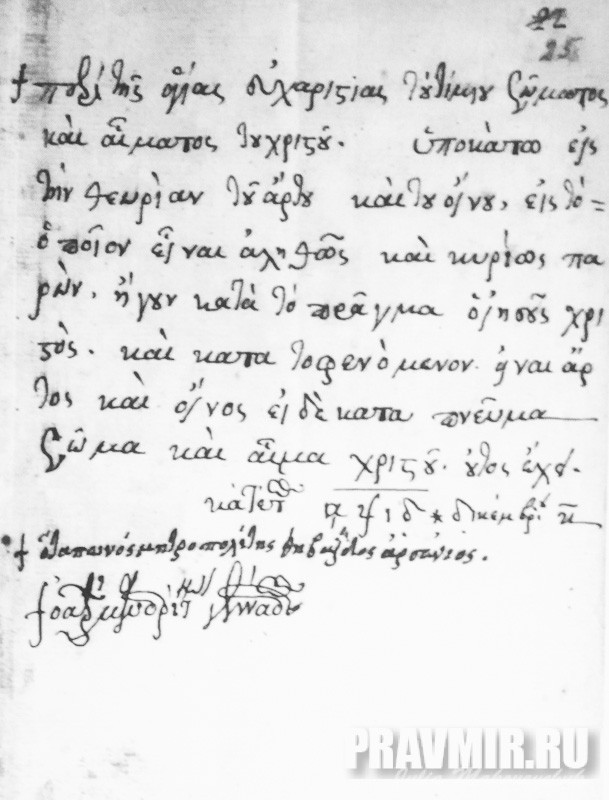 Исповедание митрополита Арсения и архимандрита Геннадия о православном учении о преложении Святых Даров