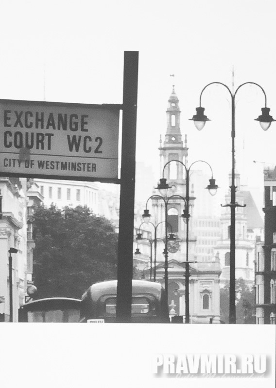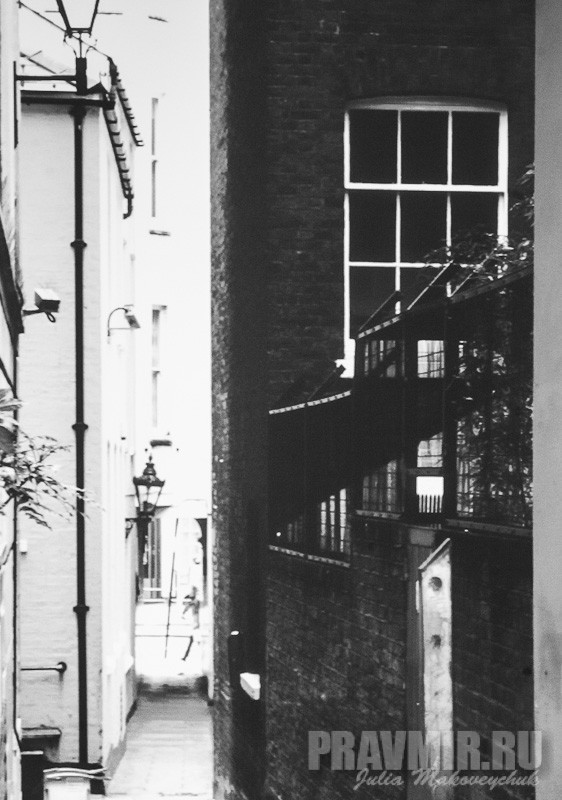 Лондон. Стрэнд. Переулок Эксчейндж корт, где секретарь Русской миссии (посольства) в Лондоне Яков Синявич в 1716 году нанял дом, в большой гостиной которого была устроена Русская Посольская церковь в честь Успения Божией Матери.
